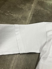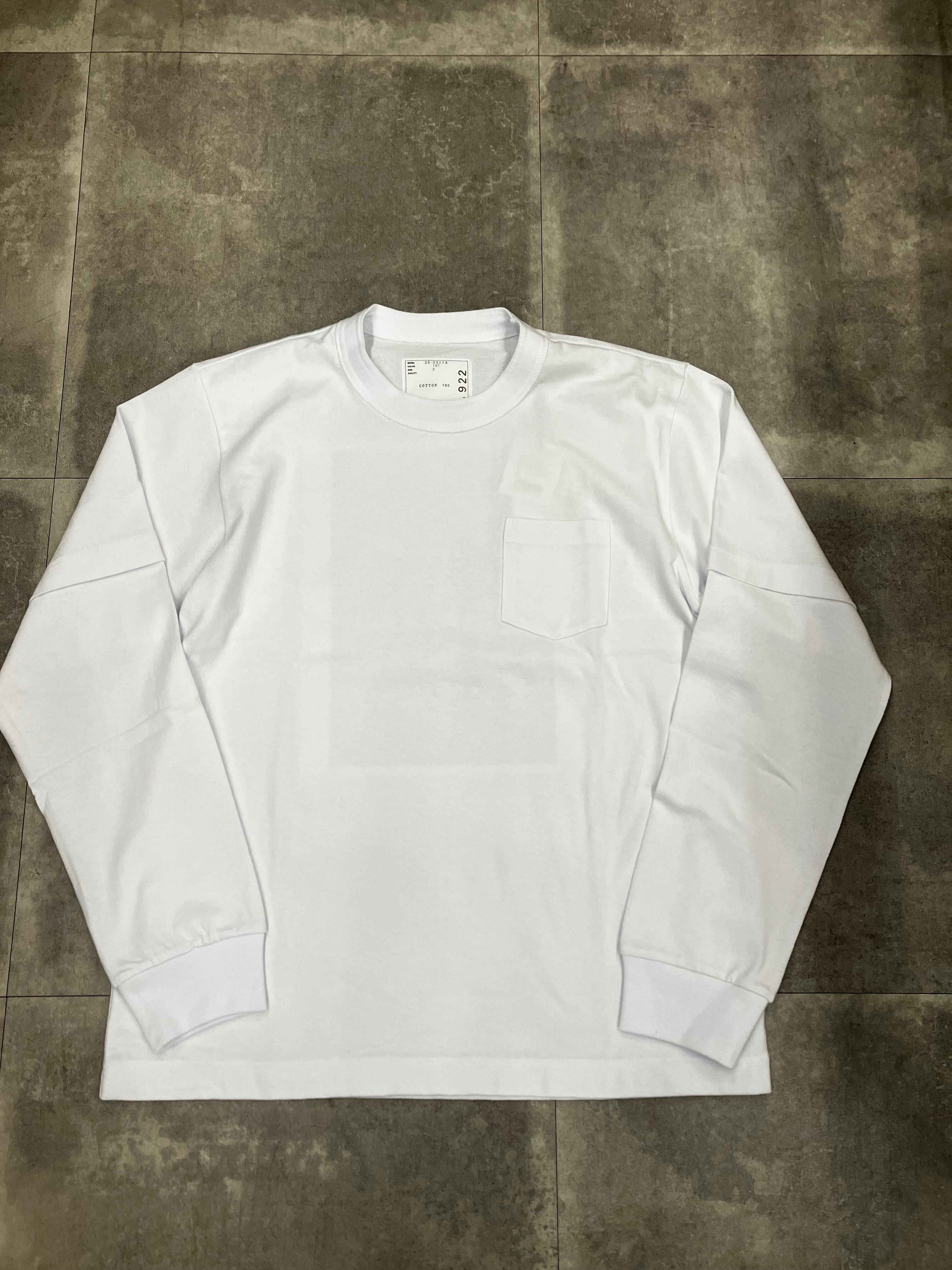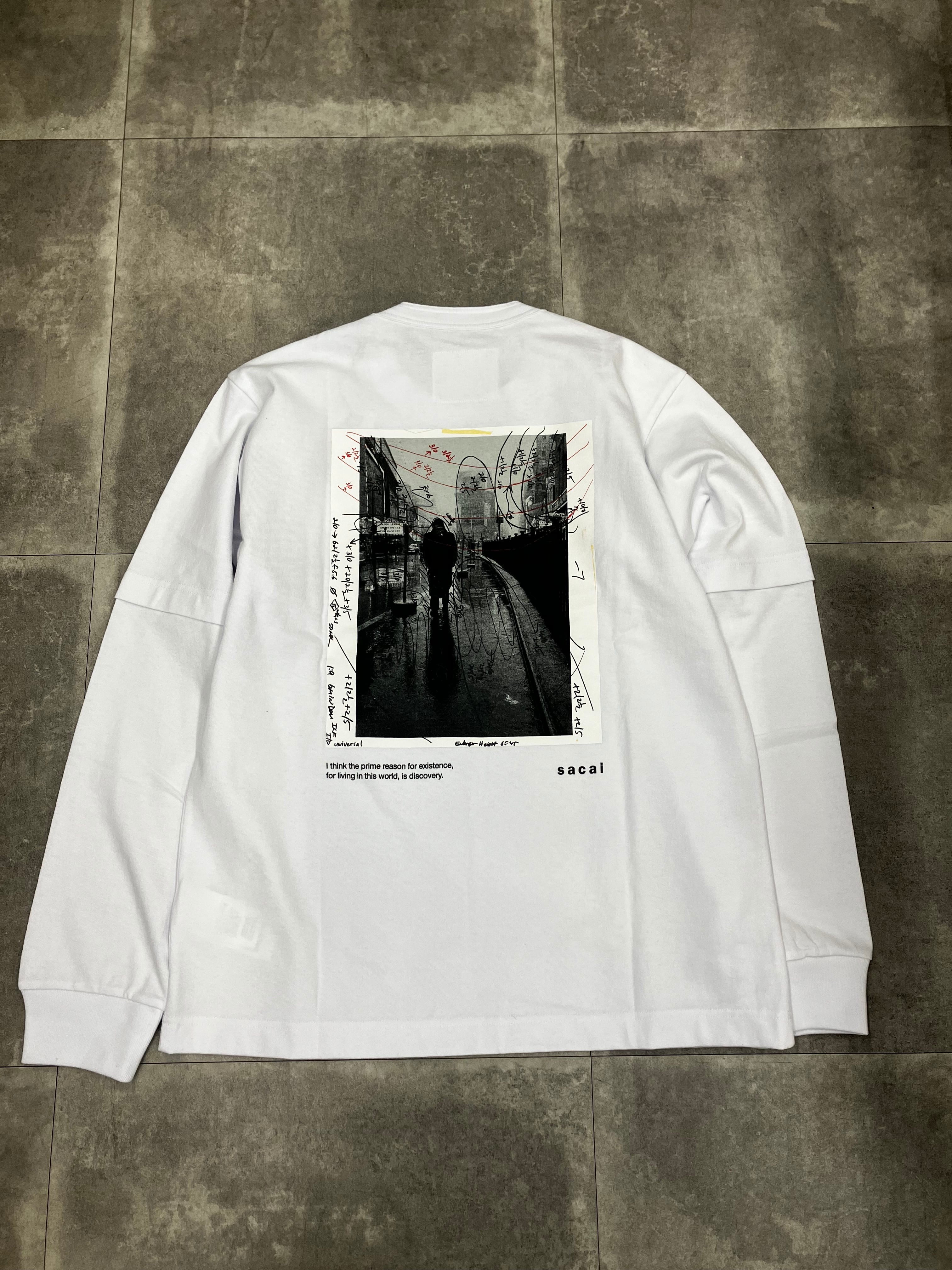 フロントはシンプルなロンTですが、バックには大胆なプリントが施されています。