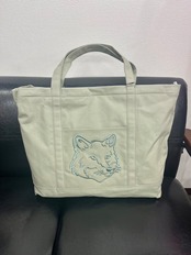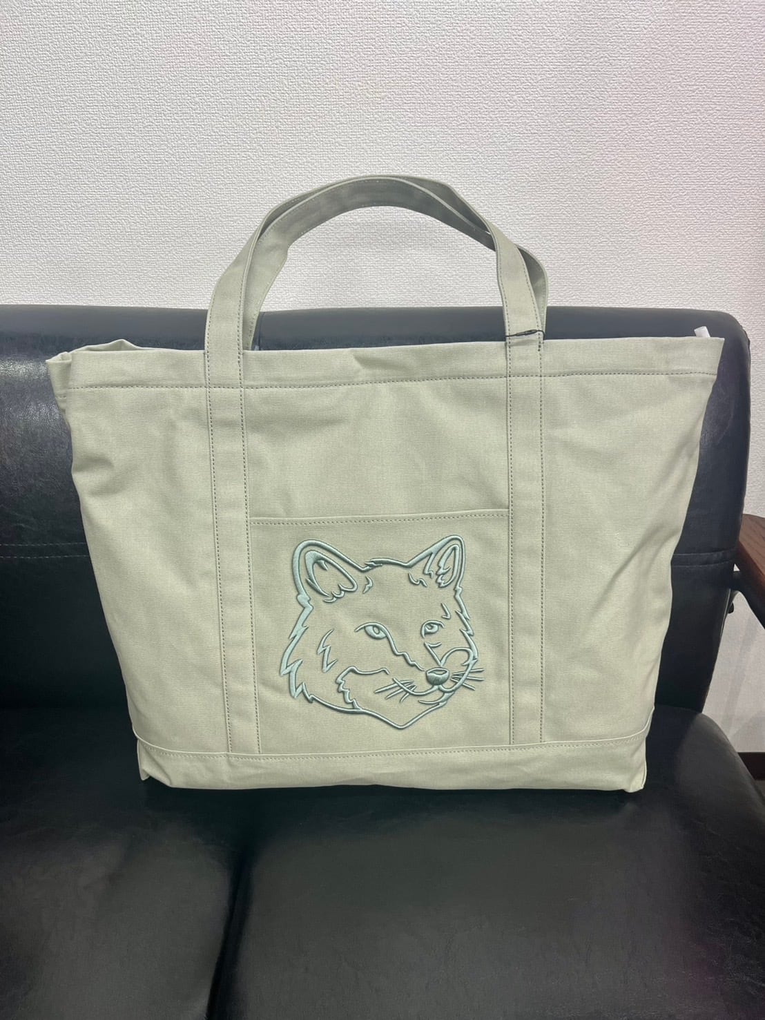 しっかり収納できる超大容量のトートバッグ。片面にSINGLEHEAD KITSUNE もう片面には、MAISON KITSUNE筆記体ロゴを同系色の糸で、刺繍!