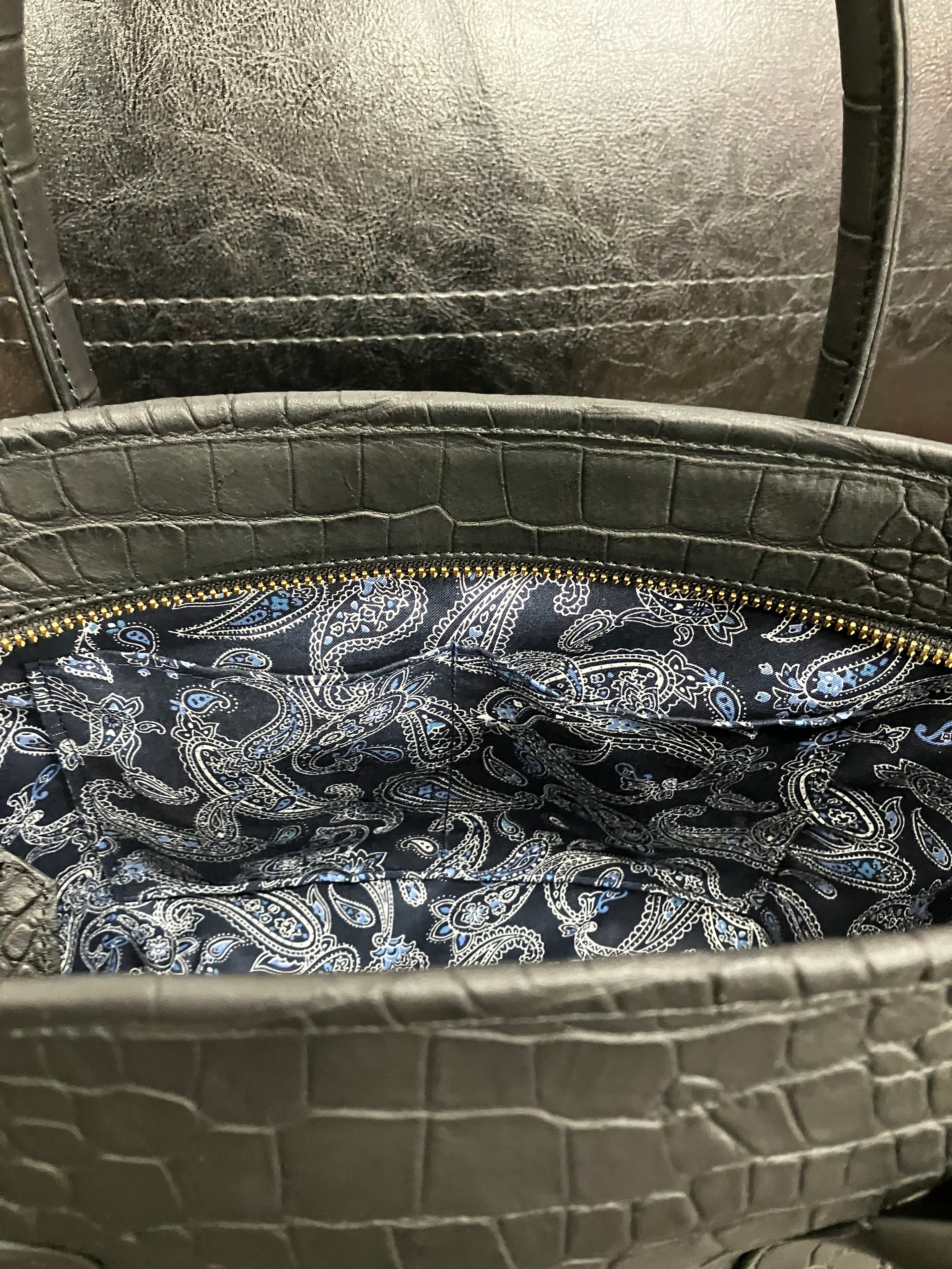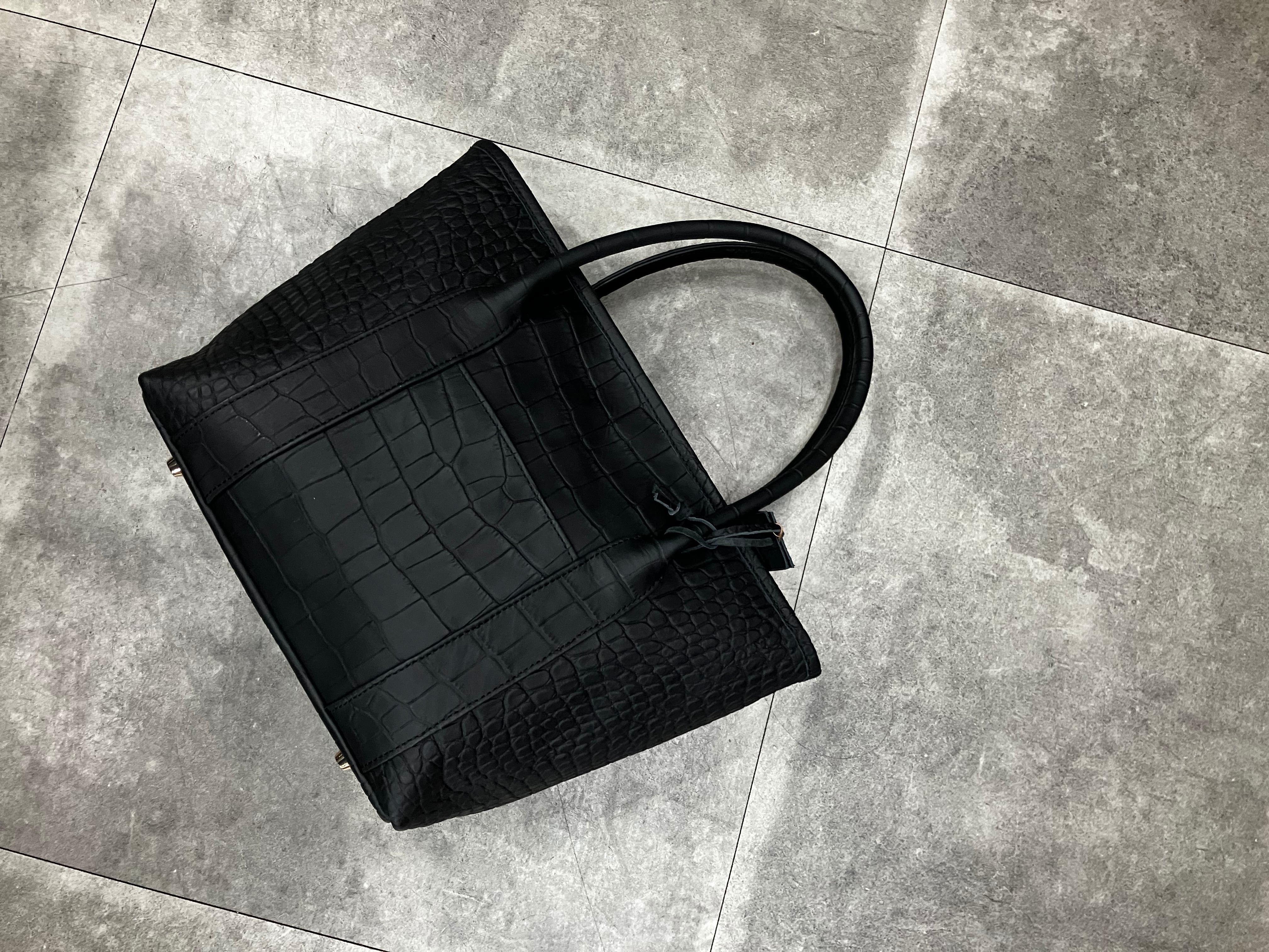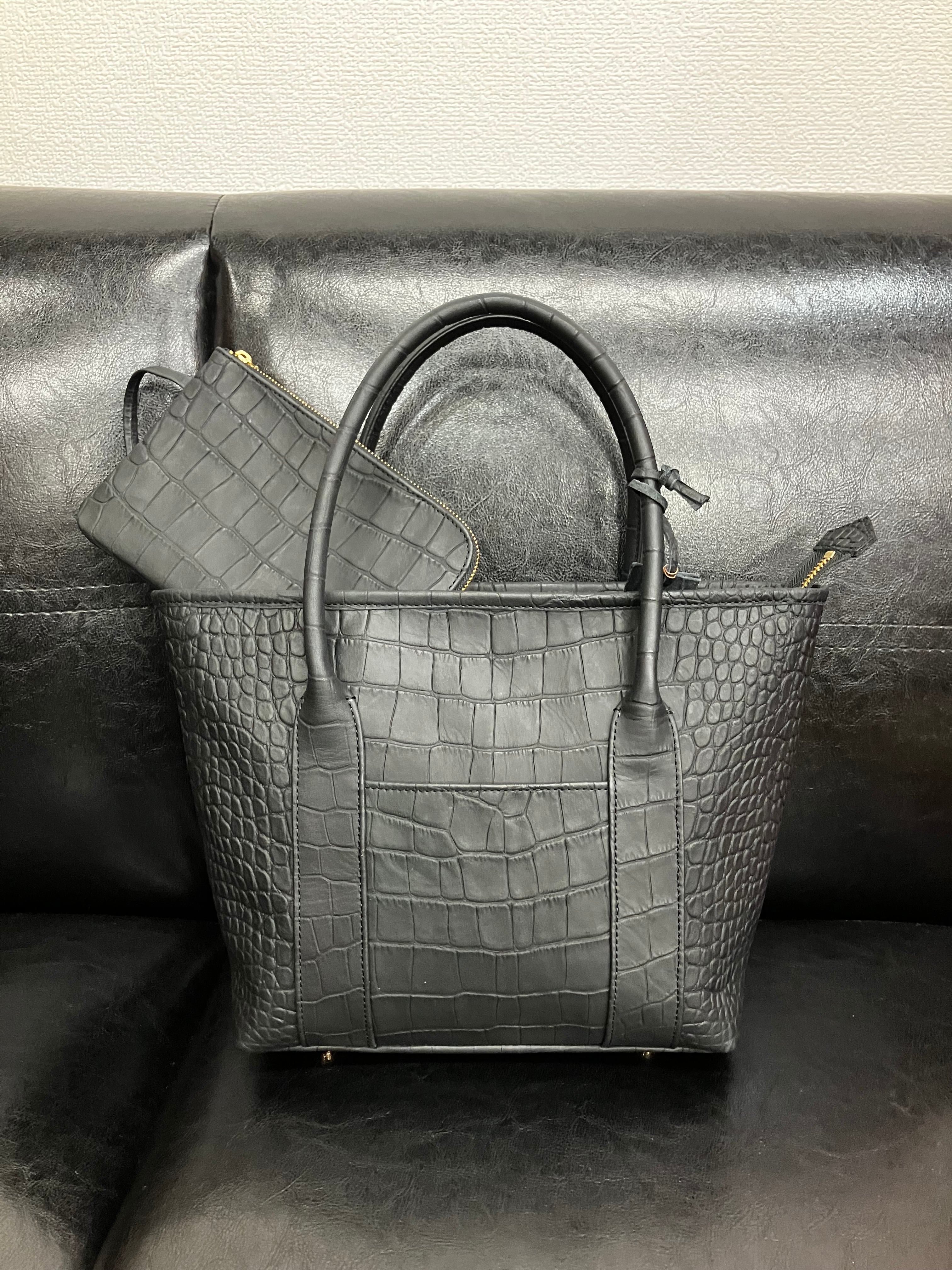 高品質で、メリハリの効いたクロコの型押し牛革を使用したミニトートバッグ。