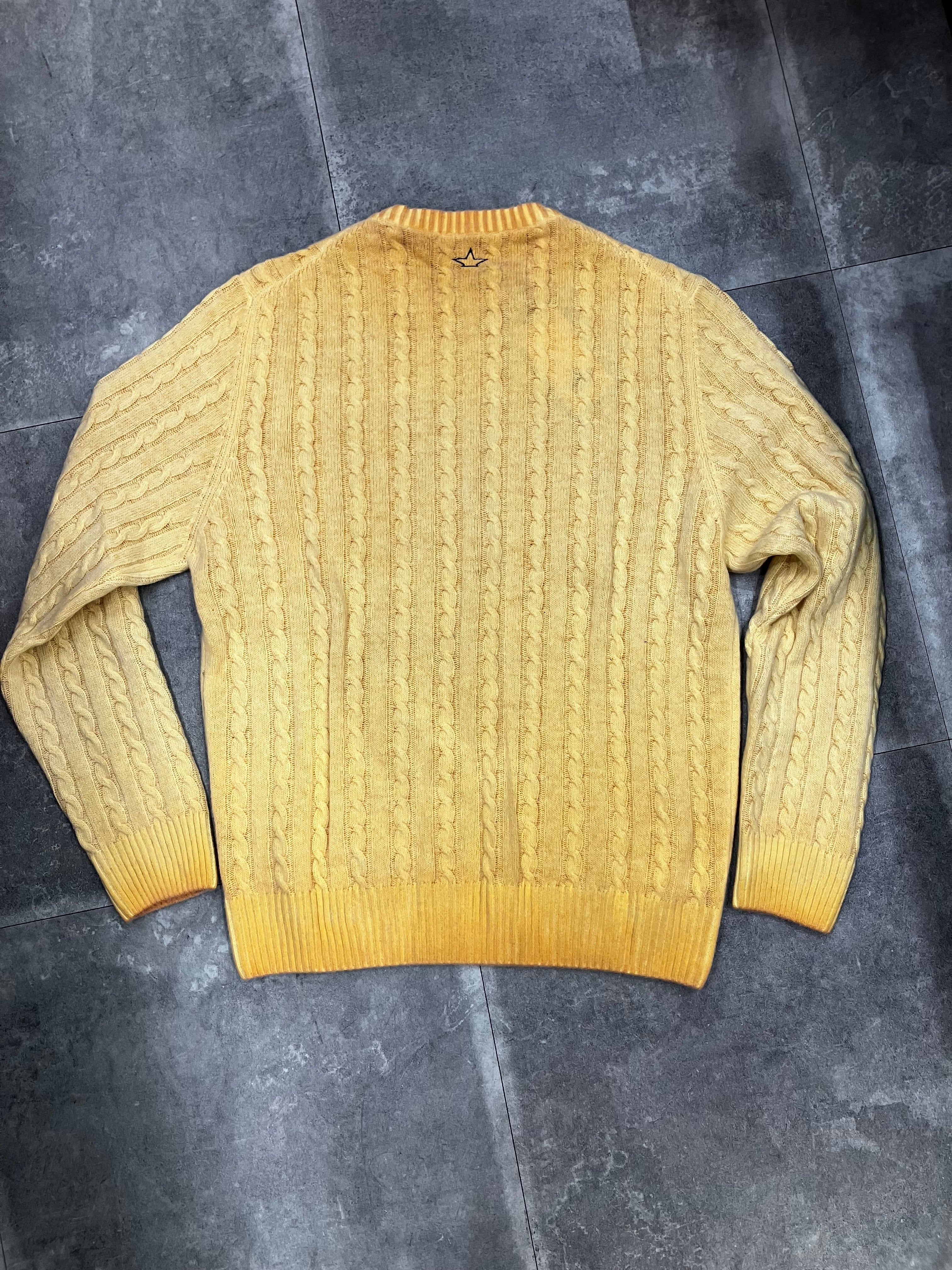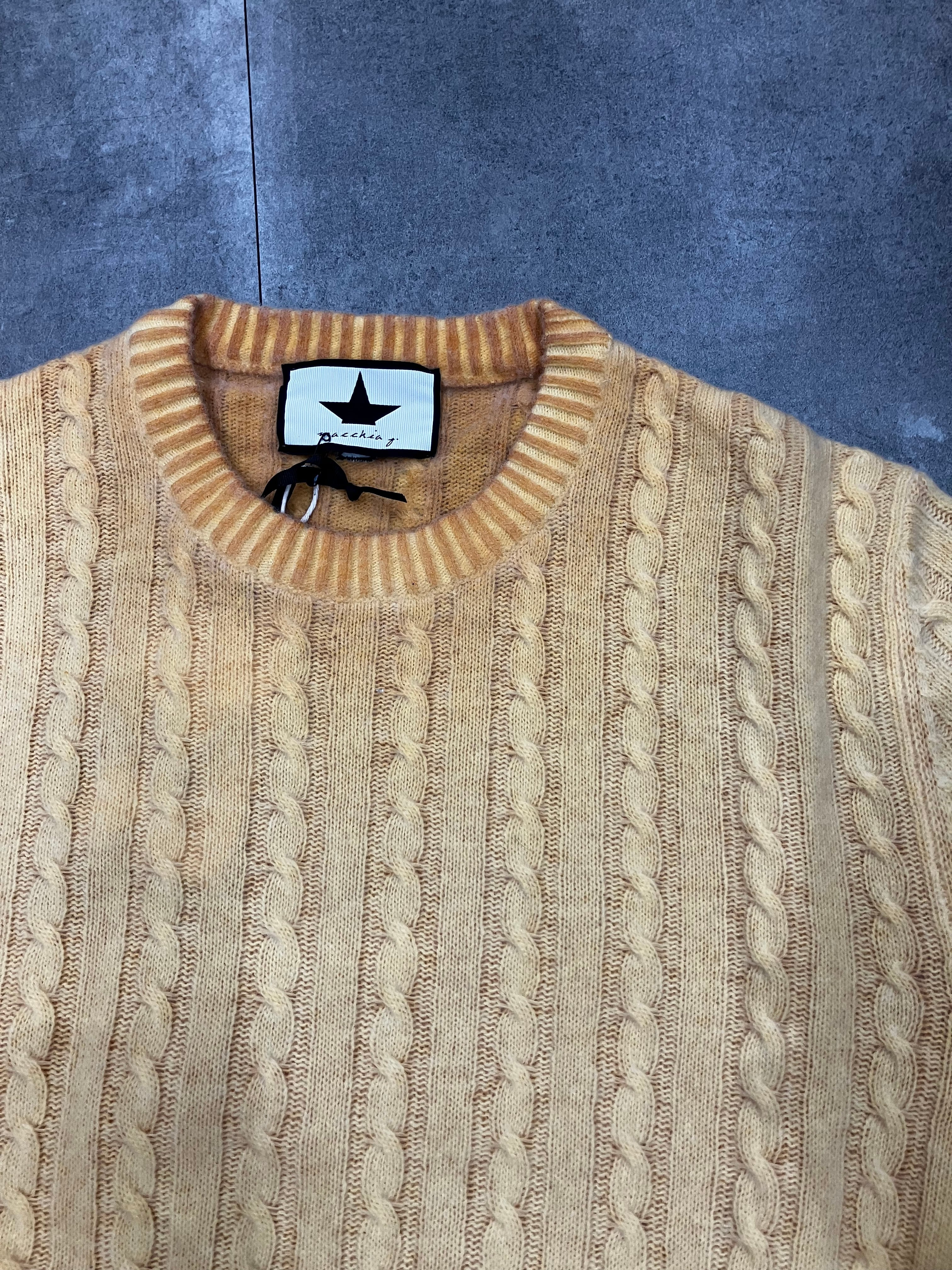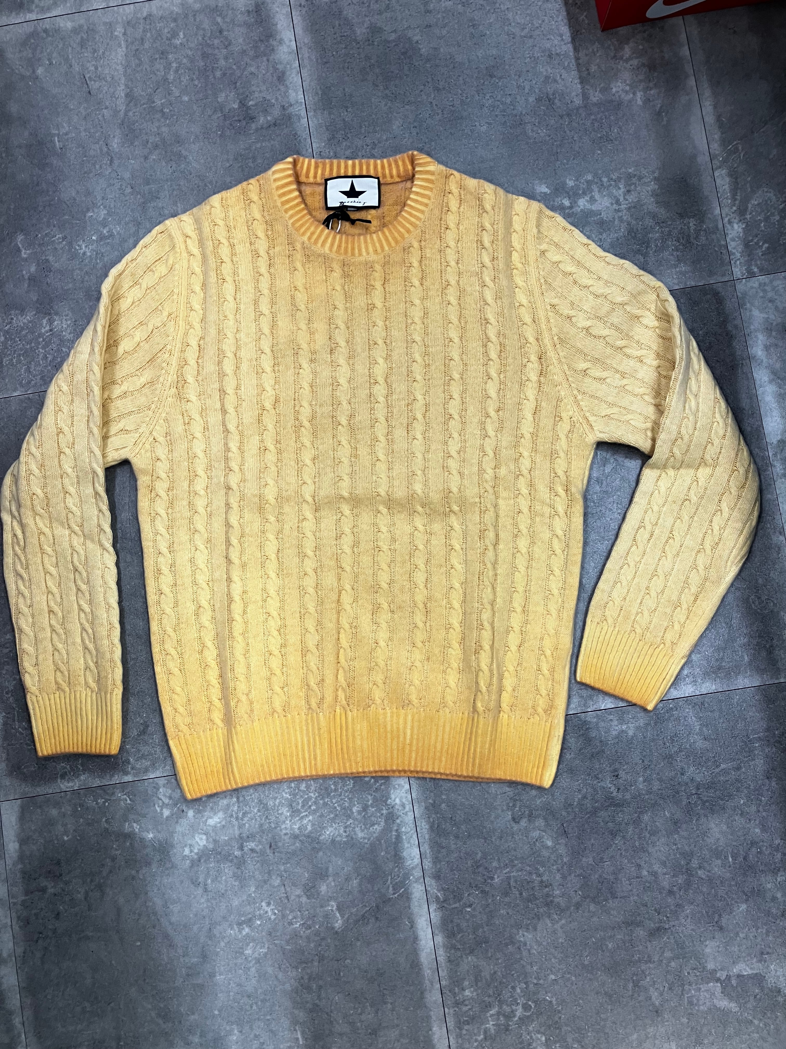 クラシックなケーブルニットにヴィンテージを思わせるカラーグラデーションを施したテクスチャーが魅力的なクルーネックニット。しっかりとした編み地は、見た目の美しさだけでなく、冬場の保温性も抜群です。