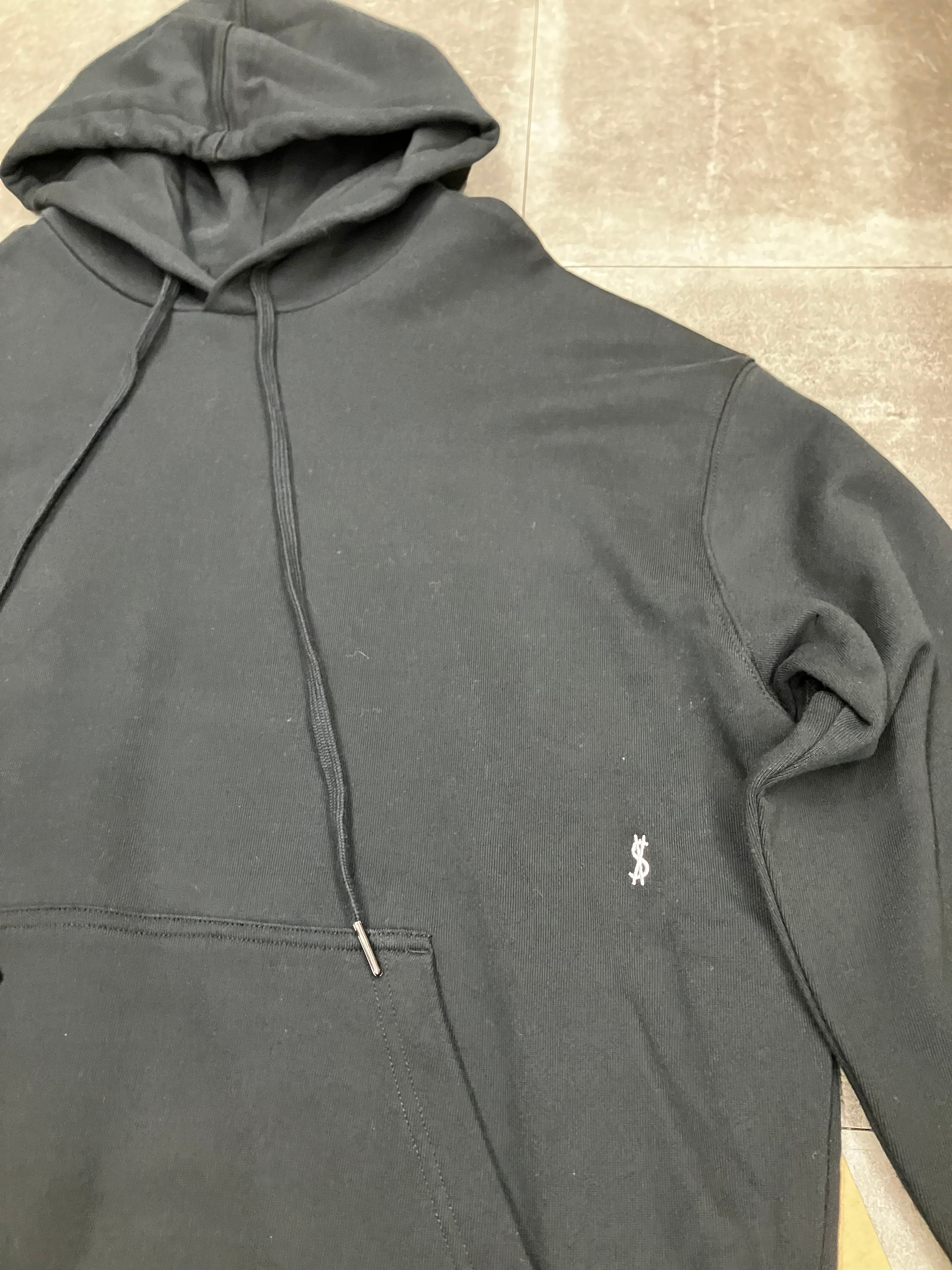 ガーメントダイ加工を施したプルオーバーフーディー。刺繡やプリントで構築したロゴ。カンガルーポケット。ドローストリングフード。オーバーサイズフィット。