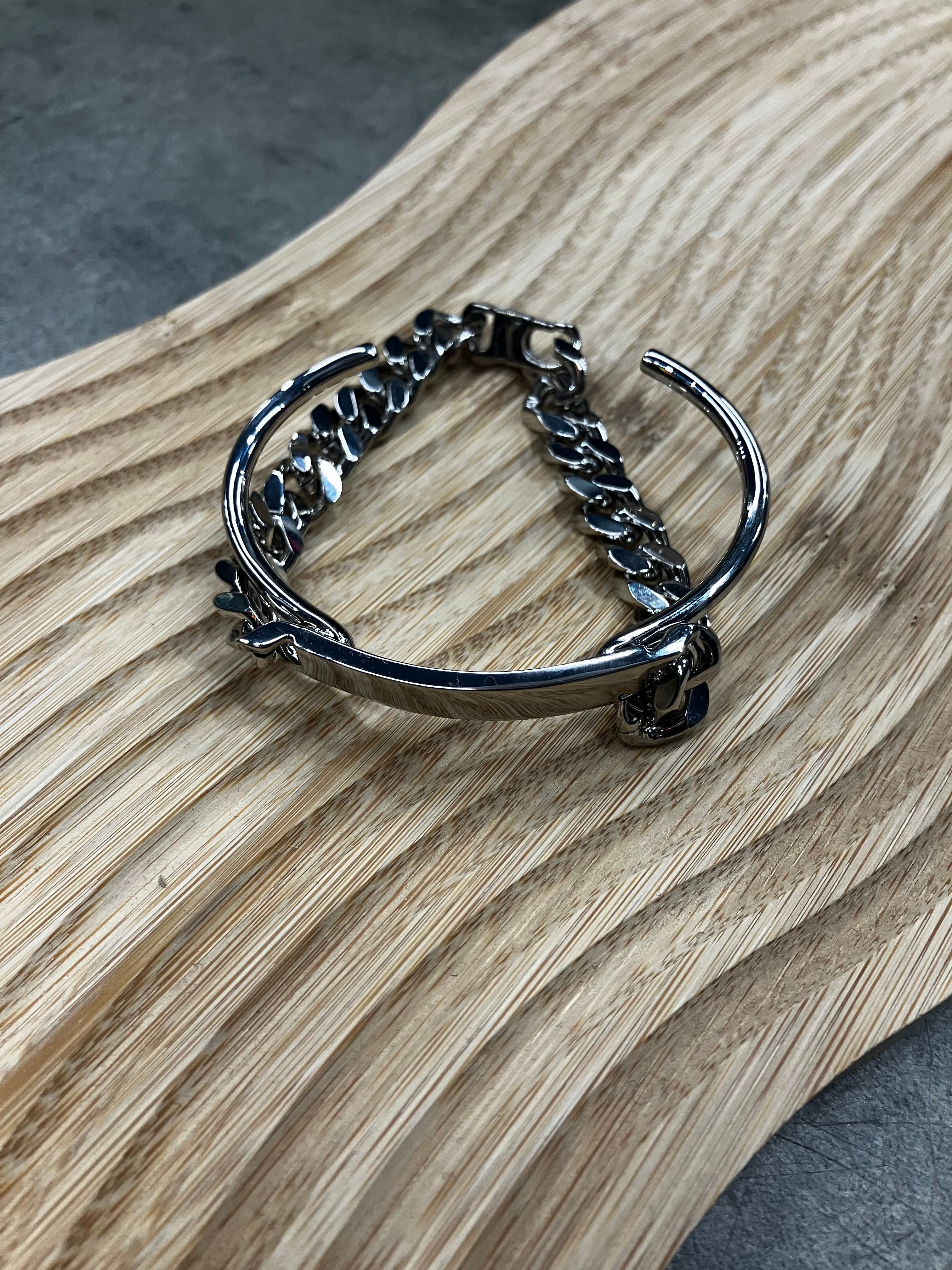 磨き上げられたカフに、機能的なチェーンパーツを組み合わせたブレスレット。内側にはお馴染みのNumericシグネチャーを刻印しています。存在感を放つデザイン・サイズ感ながら、真鍮で軽い着け心地です。