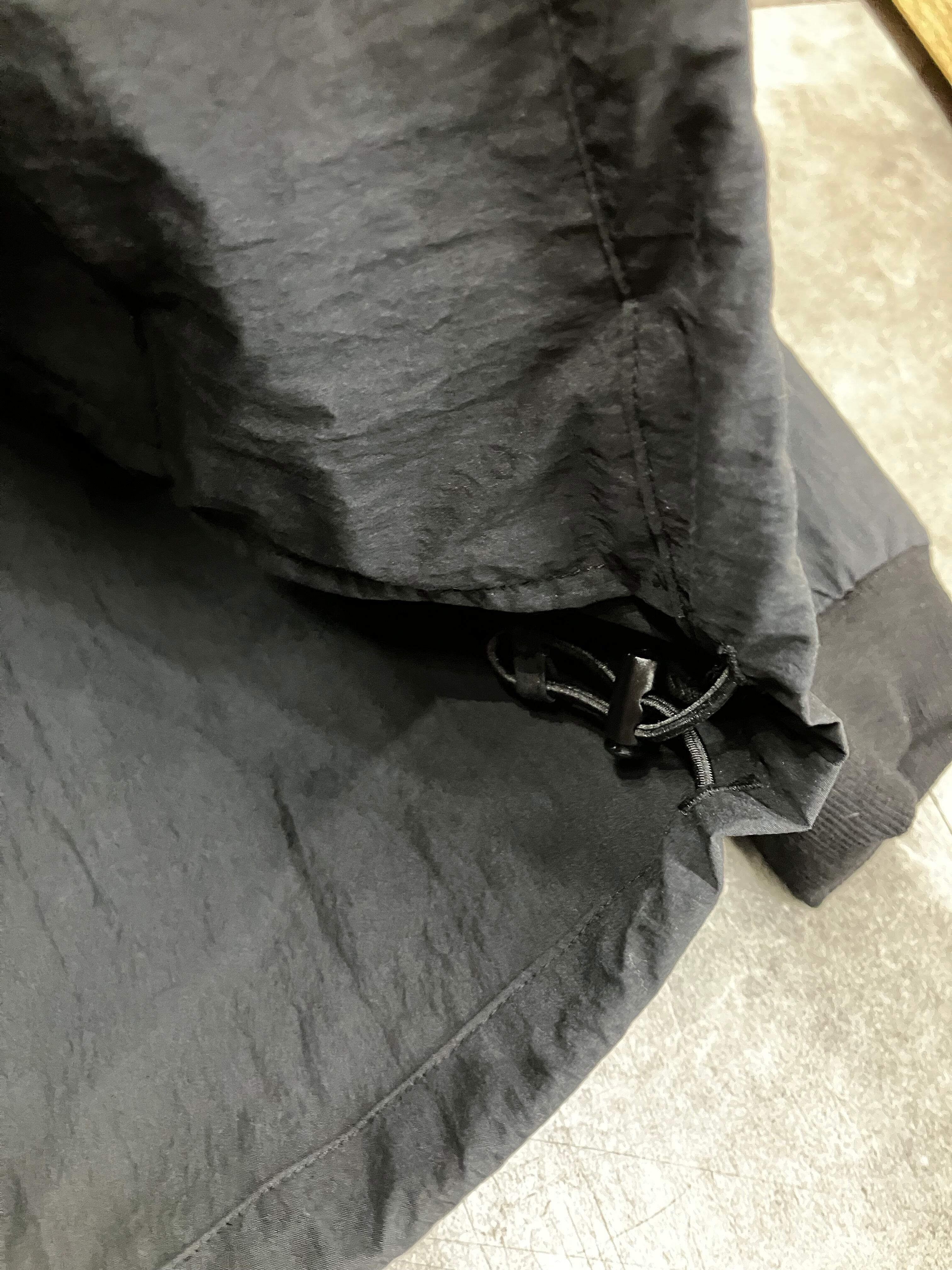 首周りと袖口にはアクセントとしてリブ素材の切り替え。裾にドローコード付きで好みのシルエットに調節が可能です。