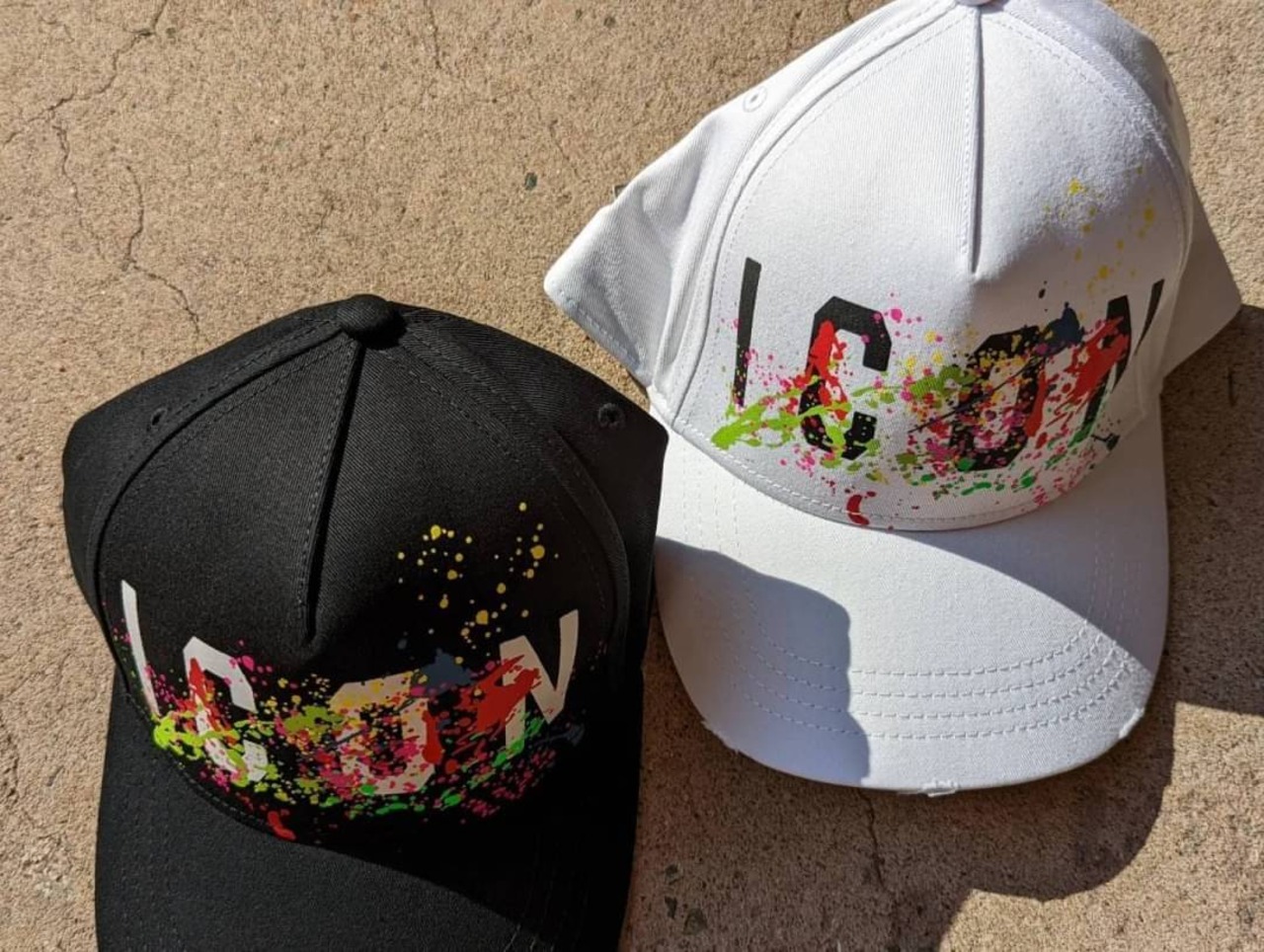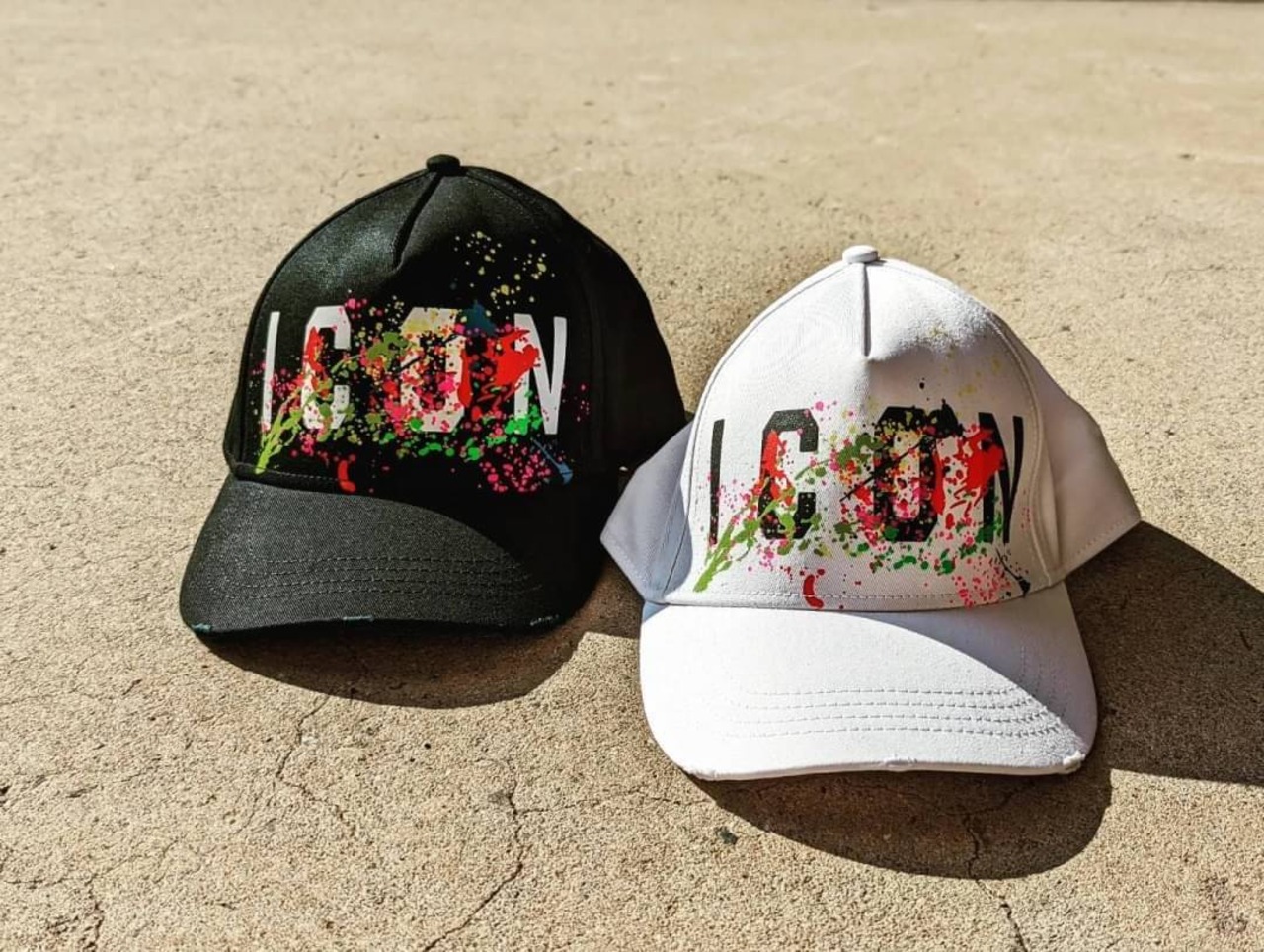レインボースプラッシュペインティングが施されたグラフィカルなキャップ。DSQUARED2の